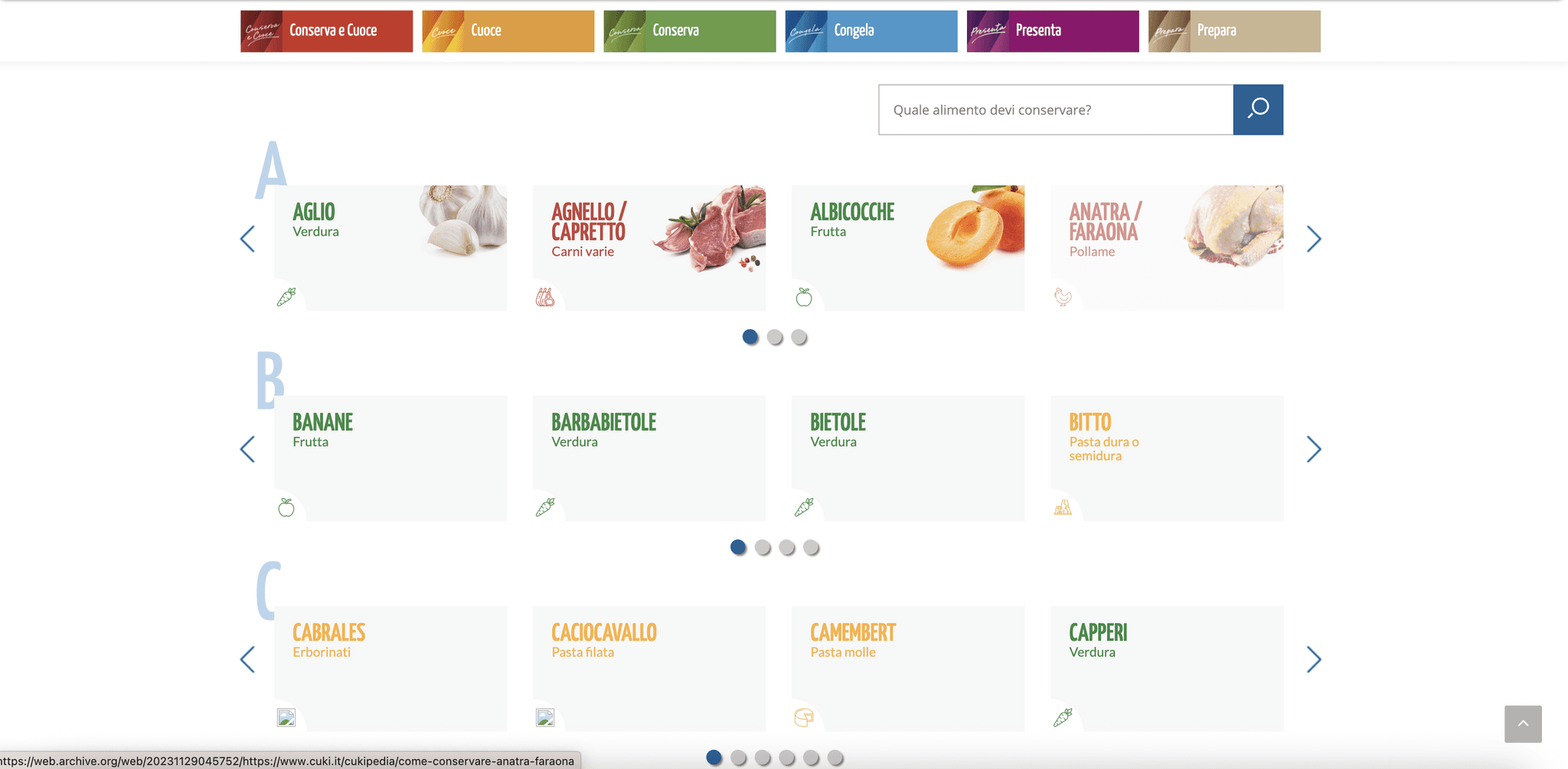 Il sito originale di Cukipedia, pur ricco di contenuti, presentava significative sfide di usabilità. La navigazione non era sufficientemente intuitiva e la ricerca di informazioni sulla conservazione degli alimenti risultava dispersiva. Questa mancanza di chiarezza e fruibilità impediva agli utenti di accedere efficacemente alle preziose informazioni sulla sostenibilità, limitandone l'impatto educativo.
