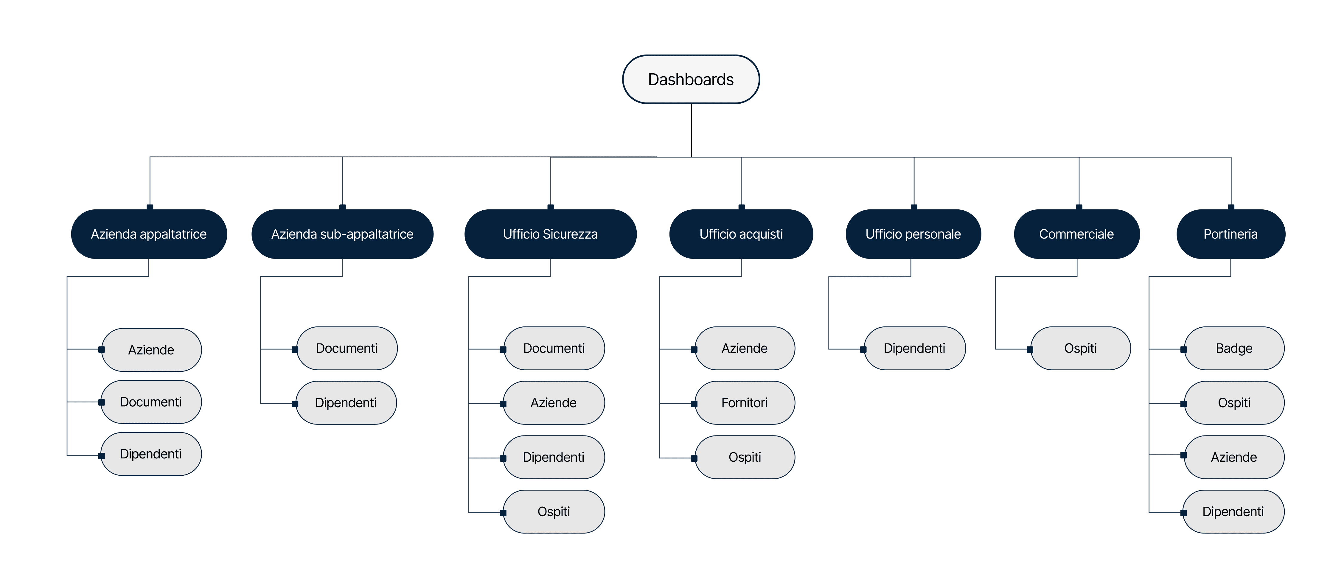 La piattaforma è stata progettata per diversi profili di utenti chiave all'interno dell'organizzazione Tankoa: personale di sicurezza e accoglienza, team amministrativi e operativi, e management e responsabili di reparto, un totale di 7 macro ruoli. L'obiettivo era servire tutti questi ruoli con interfacce e funzionalità pertinenti.